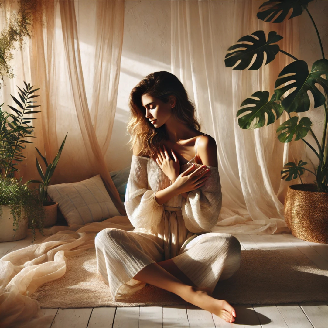 Du vaknar upp och känner dig utvilad, lätt och levande. När du ser dig själv i spegeln ser du en version av dig som utstrålar självkärlek och självförtroende. Din kropp känns som en plats där du trivs – en trygg plats för njutning, glädje och närvaro.